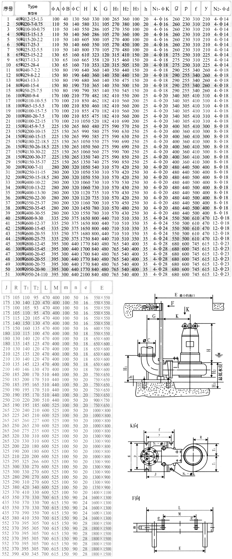 3、WQ型系列無堵塞潛水排污泵;進出口徑