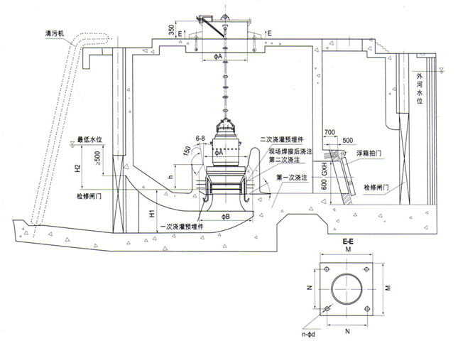 (2)、淹沒深度除需要滿足表中要求外,還必須比流道進口上緣至少高500mm。